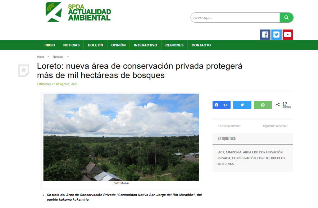 La concesión para conservación Pumasapa está ubicada en el distrito de Huicungo, provincia de Mariscal Cáceres, departamento de San Martin. Abarca 1,688.07 hectáreas de bosques primarios de montañas altas empinadas, con nacientes de agua que conforman la quebrada Mituache. La Asociación de Conservación y Desarrollo Pumasapa-Nueva Esperanza (ACODEPUNE) viene impulsando esta iniciativa con el afán de cuidar […]
