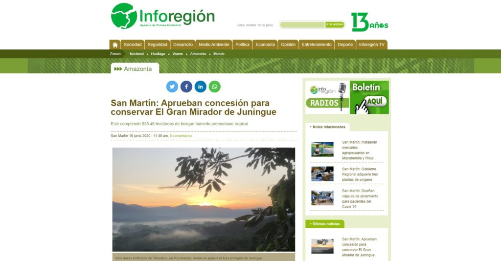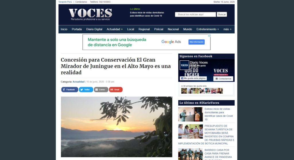 La pandemia no ha detenido la deforestación, pero los Guardianes y Guardianas de la Red de Conservación Voluntaria y Comunal de San Martín siguen vigilando sus bosques junto con sus aliados y autoridades competentes. La Concesión para Conservación Chullachaqui Renacal de Santa Elena abarca un ecosistema de 1,235.32 ha de bosques inundables, de aguajales, renacales y […]