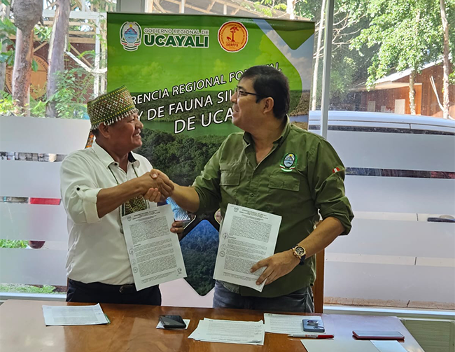 Este proceso se oficializó con la firma del contrato de otorgamiento N° 25-UCA-PUC/CON-2025-001 por 40 años renovables, con Resolución Gerencial Regional N 191-2025-GRU-GGR-GRFFS, que contó con la presencia del líder de la FECONALICM, Adán Sánchez Huayta, representantes de la Gerencia Regional Forestal y de Fauna Silvestre de Ucayali (GERFFS), de la Autoridad Regional Ambiental (ARA) de Ucayali, jefes de las comunidades nativas de Buenos Aires, Junín Pablo y Nuevo Loreto, de la Universidad Nacional Intercultural de la Amazonia, de Viridis Tours, de la Organización No Gubernamental (ONG) AIDER, de la Asociación Centro Indígena para el Desarrollo Sostenible (CINDES), de la Asociación Civil Intercultural Bari Wesna, de la Asociación ProPurus, así como de la Directora Ejecutiva de Amazónicos por la Amazonía (AMPA), Rita Vilca y el Director del Programa de Conservación de AMPA, Jorge Fachin.