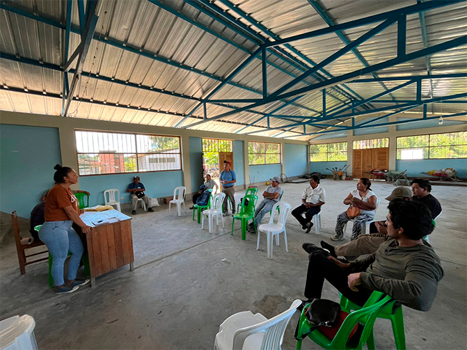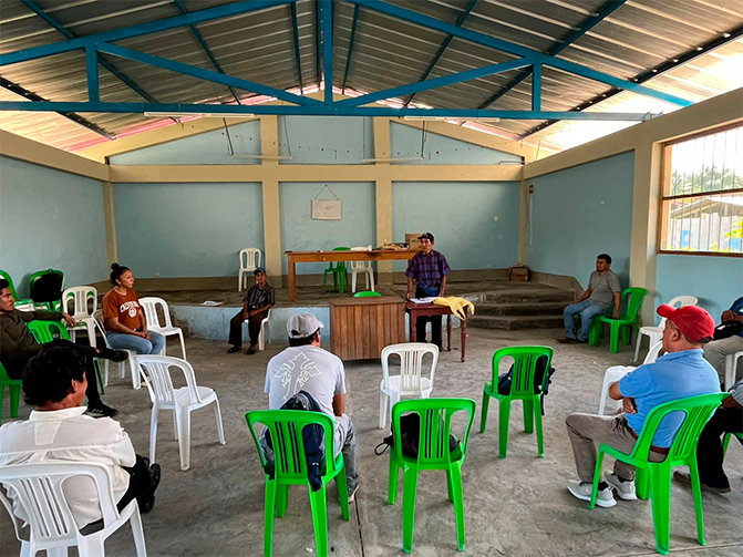 Se dio inicio a esta actividad con el teniente gobernador de Nueva Libertad dando palabras de apertura, a su vez el representante del equipo técnico de AMPA se presentó ante las autoridades de la Municipalidad distrital de Uchiza y otros representantes de las nueve comunidades. Luego, se les compartió la propuesta y el proceso en el que se encuentra actualmente, es decir la evaluación del expediente técnico de la propuesta de CCBSAT por parte de la Autoridad Regional.